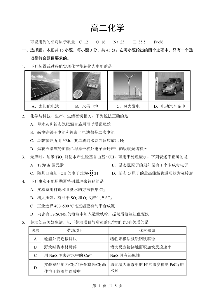 高二化学--湖北省孝感市楚天协作体2025-2026学年度上学期高二年级期末考试