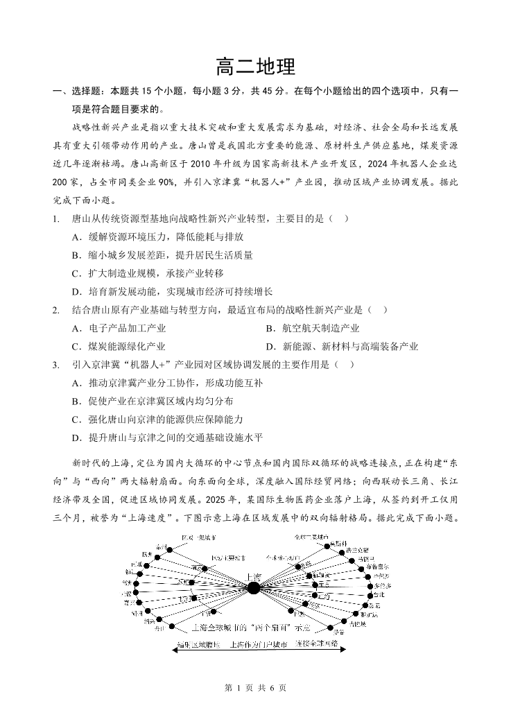 高二地理--湖北省孝感市楚天协作体2025-2026学年度上学期高二年级期末考试