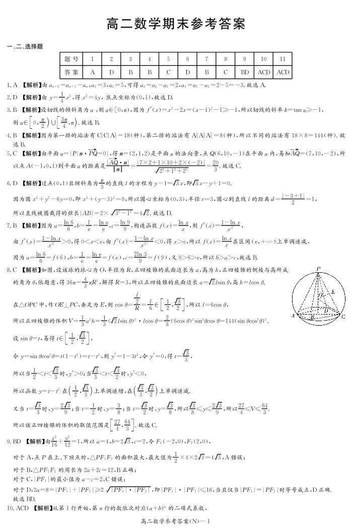 高二数学答案--湖南省长沙市长郡中学2025-2026学年高二上学期1月期末考试