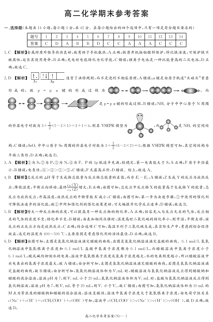 高二化学答案--湖南省长沙市长郡中学2025-2026学年高二上学期1月期末考试