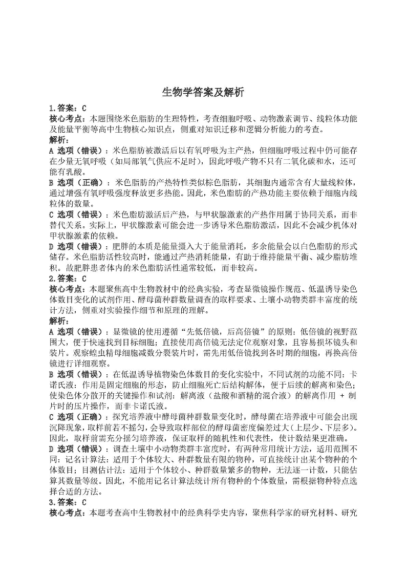 高二生物答案--湖南省常德市沅澧共同体2025-2026学高二上学期期末考试
