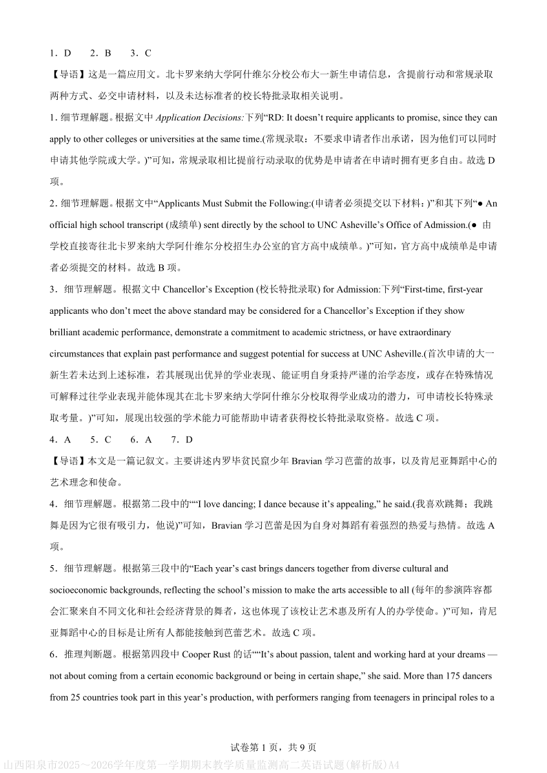 高二英语(解析版)--山西省阳泉市2025-2026学年高二上学期期末考试