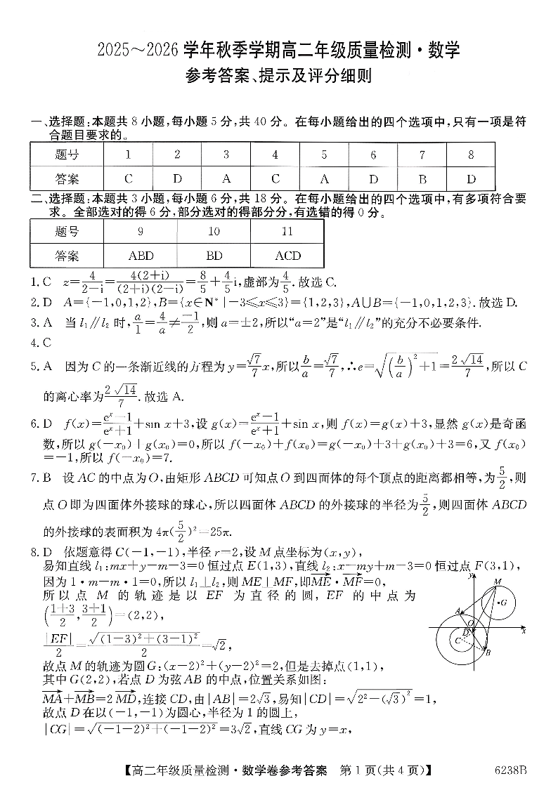 高二数学答案--云南省昭通市多县2025-2026学年高二上学期期末