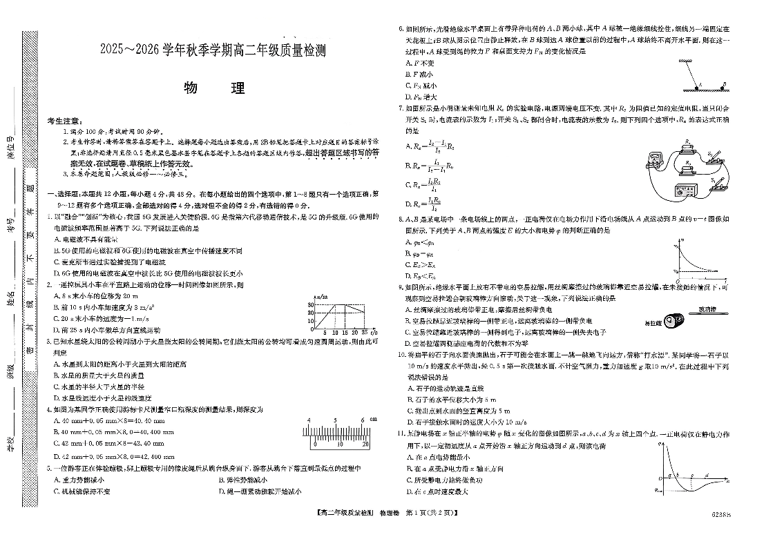 高二物理--云南省昭通市多县2025-2026学年高二上学期期末