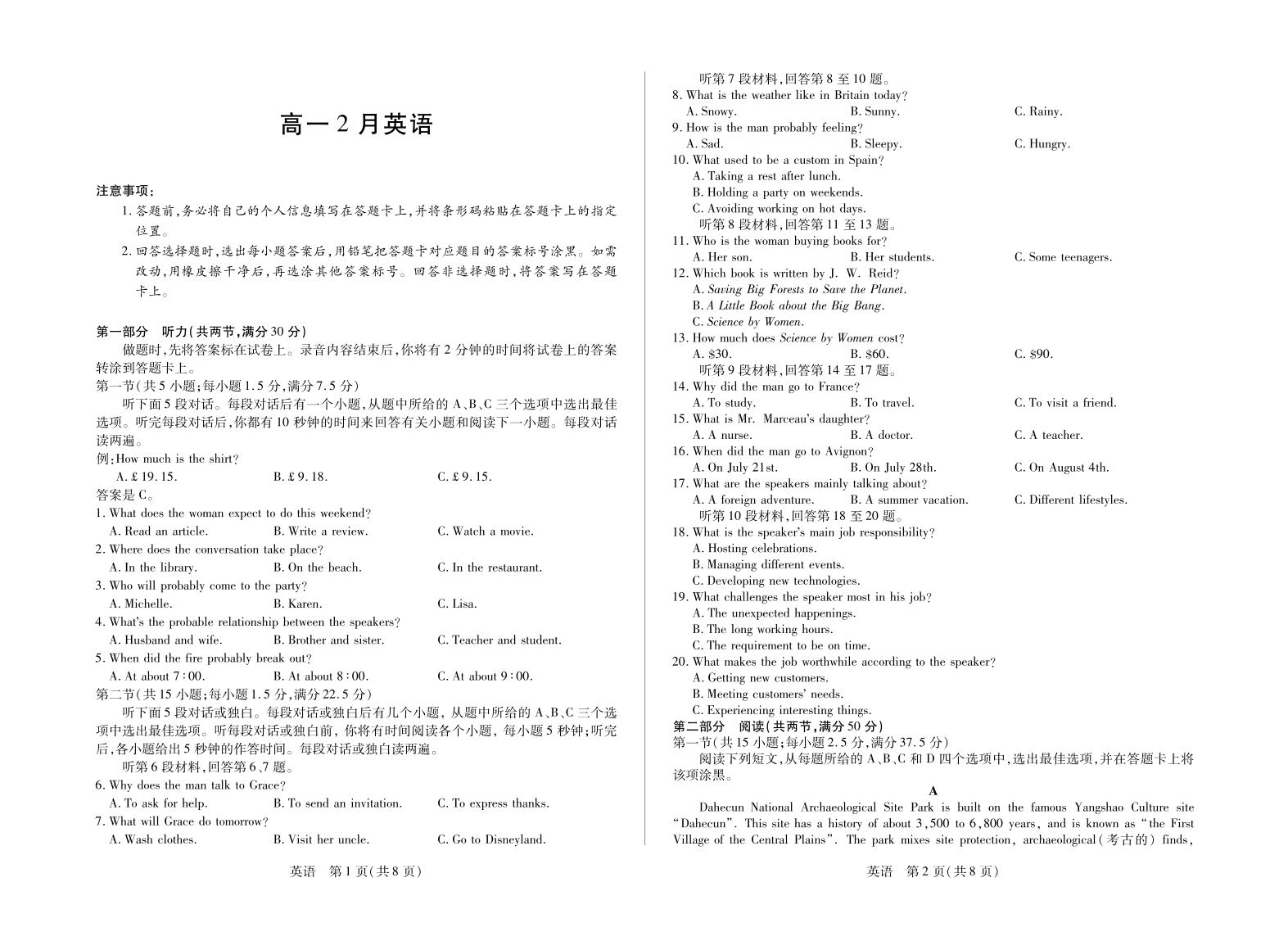 高一英语--安徽省合肥六中等学校2025-2026学年高一上学期2月期末考试