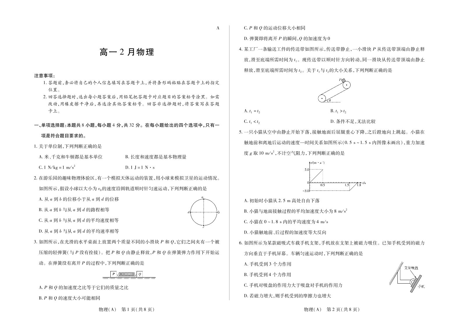 高一物理--安徽省合肥六中等学校2025-2026学年高一上学期2月期末考试