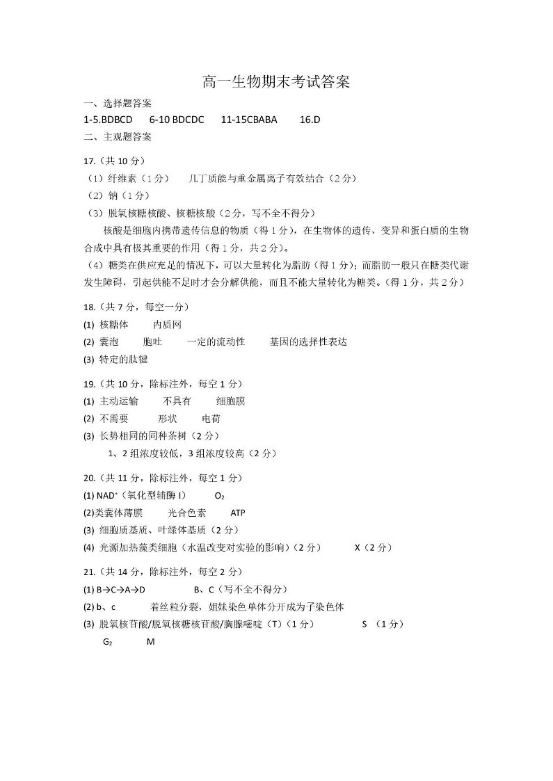 高一生物答案--山西省运城市2025-2026学年高一第一学期期末调研测试