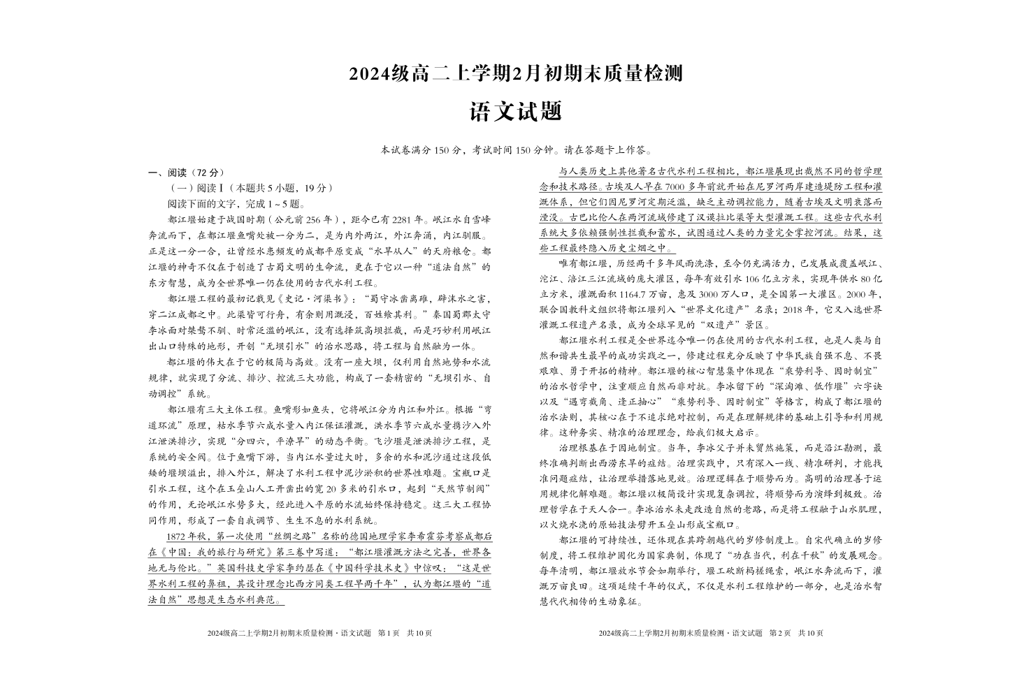 高二语文--安徽省A10联盟2025-2026学年高二上学期2月初期末质量检测