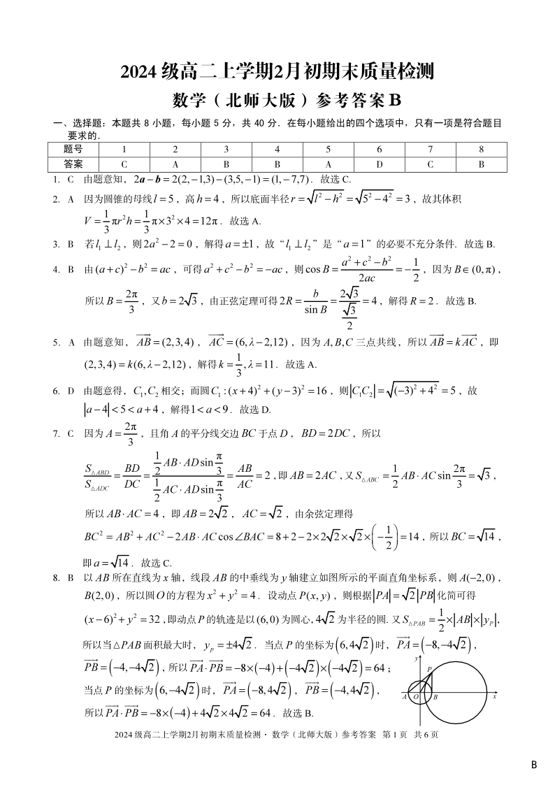 高二数学B答案--安徽省A10联盟2025-2026学年高二上学期2月初期末质量检测