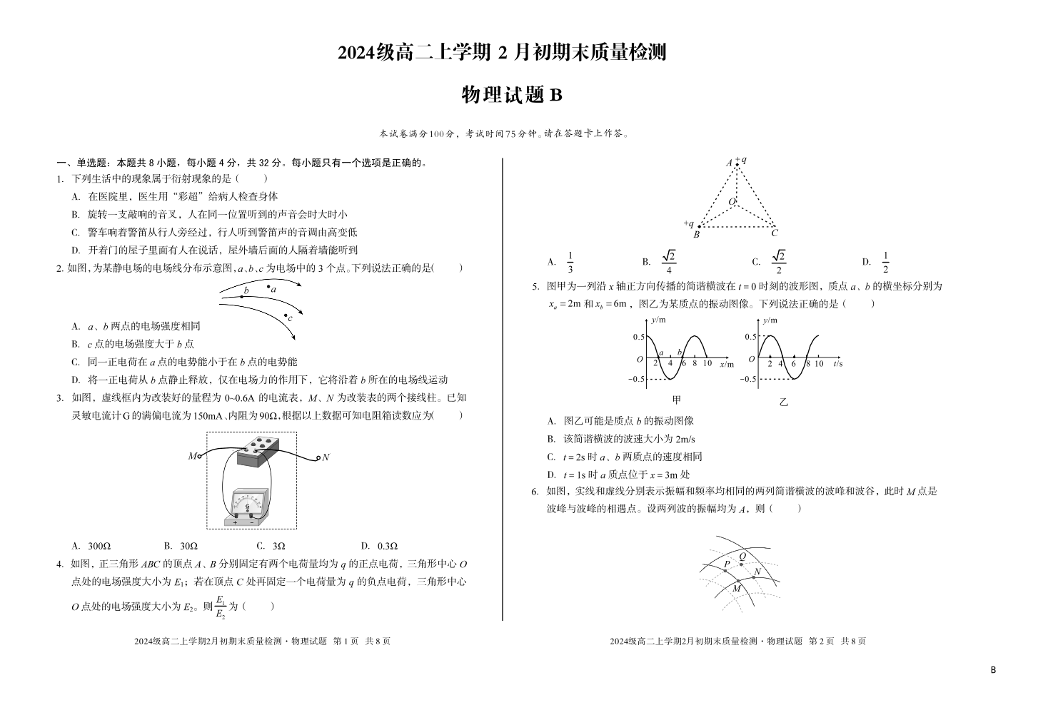 高二物理B--安徽省A10联盟2025-2026学年高二上学期2月初期末质量检测