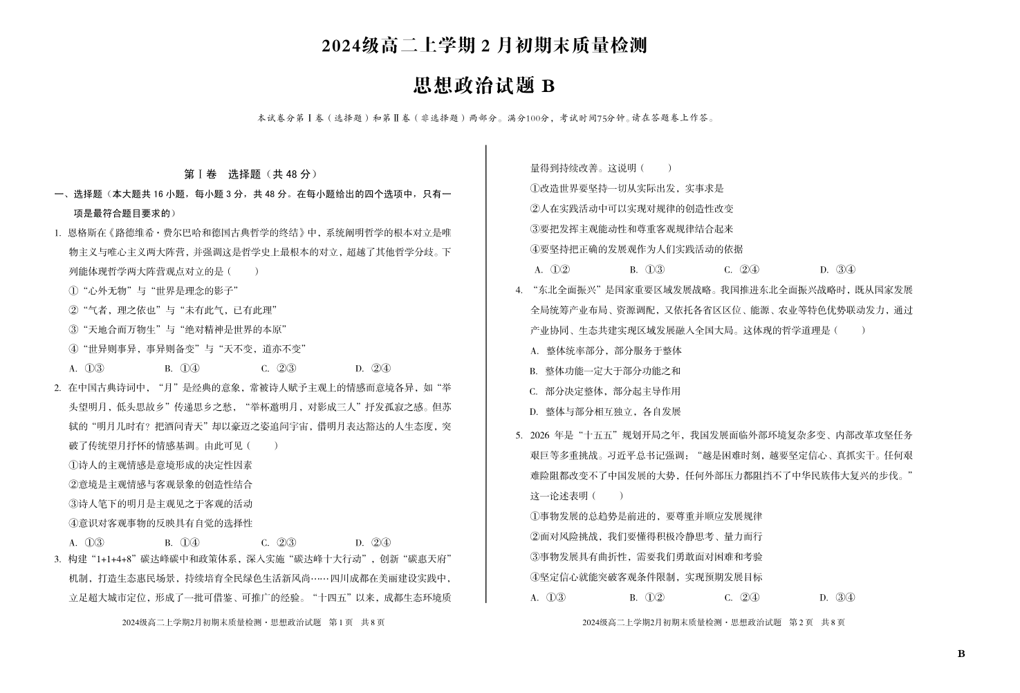 高二政治B--安徽省A10联盟2025-2026学年高二上学期2月初期末质量检测