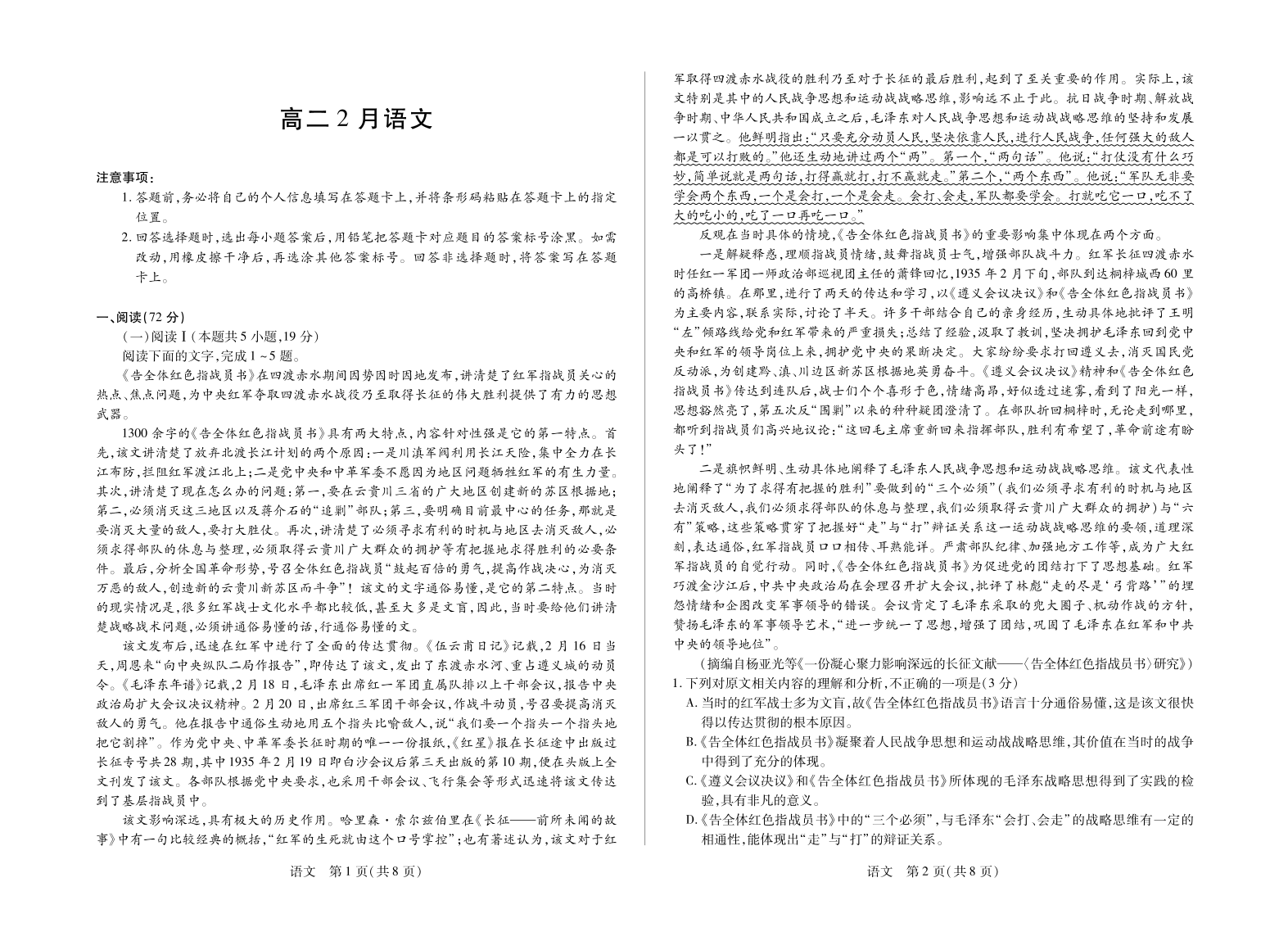 高二语文--安徽省合肥六中等学校2025-2026学年高二上学期2月期末考试