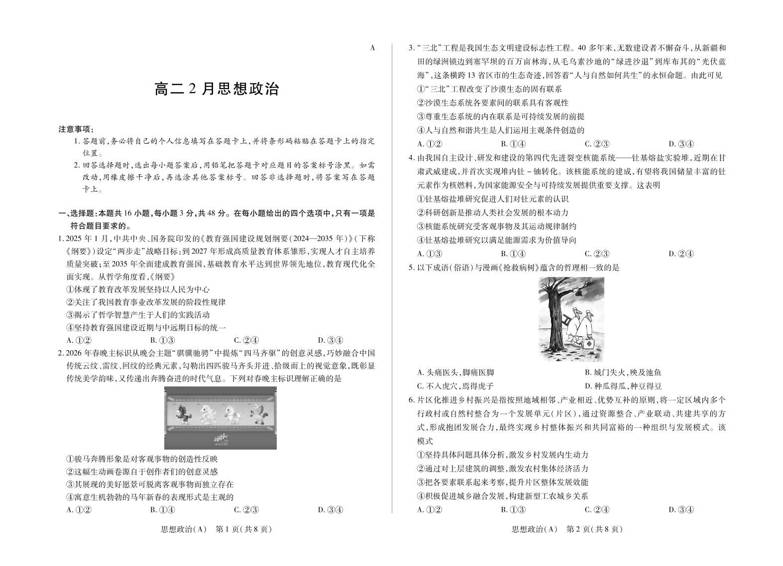 高二政治--安徽省合肥六中等学校2025-2026学年高二上学期2月期末考试