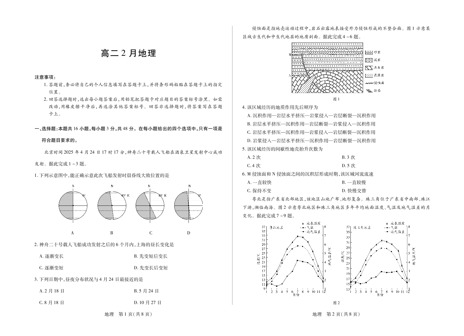高二地理--安徽省合肥六中等学校2025-2026学年高二上学期2月期末考试