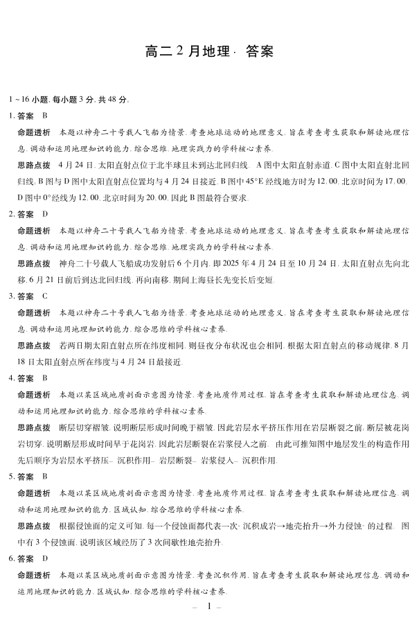 高二地理答案--安徽省合肥六中等学校2025-2026学年高二上学期2月期末考试