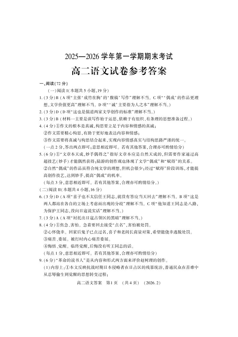 高二语文答案--河南省洛阳市2025-2026学年高二上学期2月期末考试