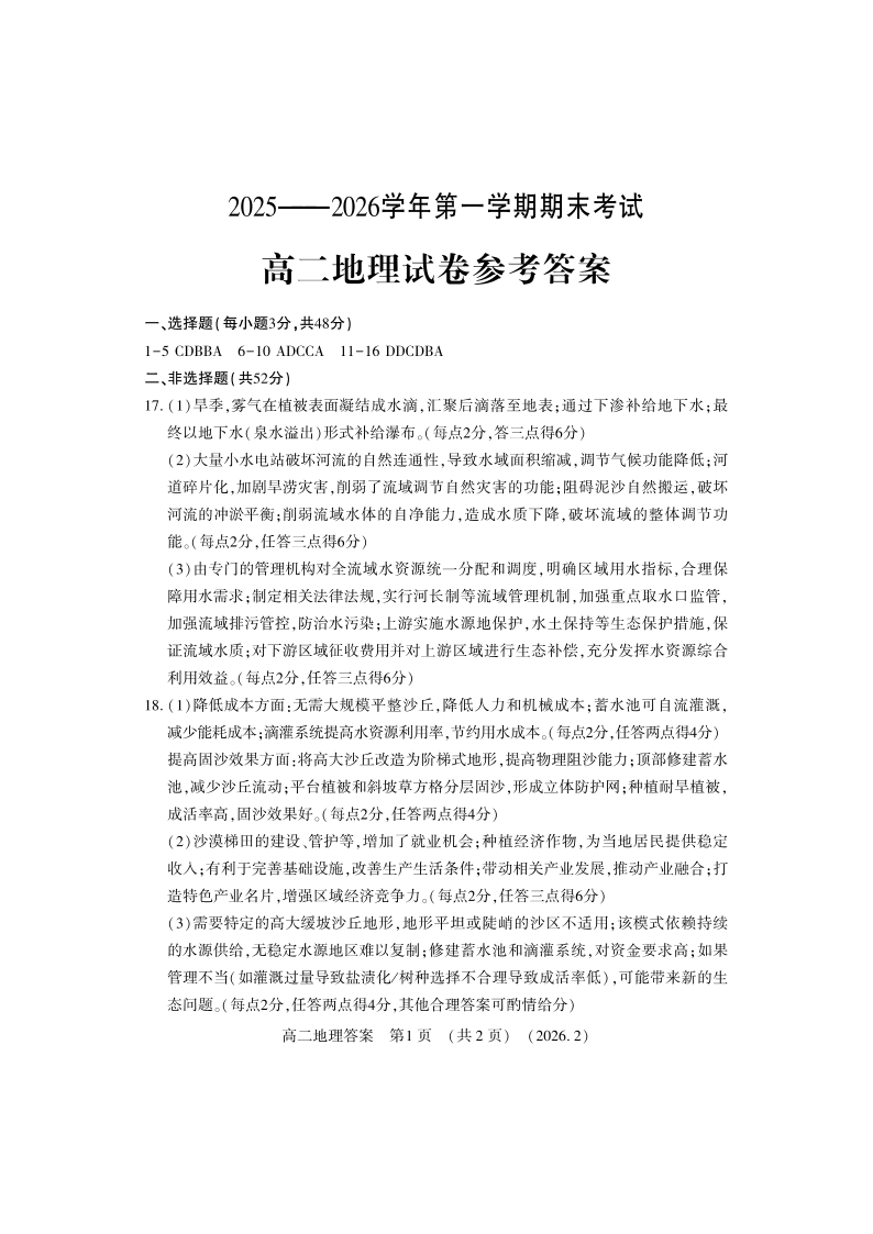 高二地理答案--河南省洛阳市2025-2026学年高二上学期2月期末考试