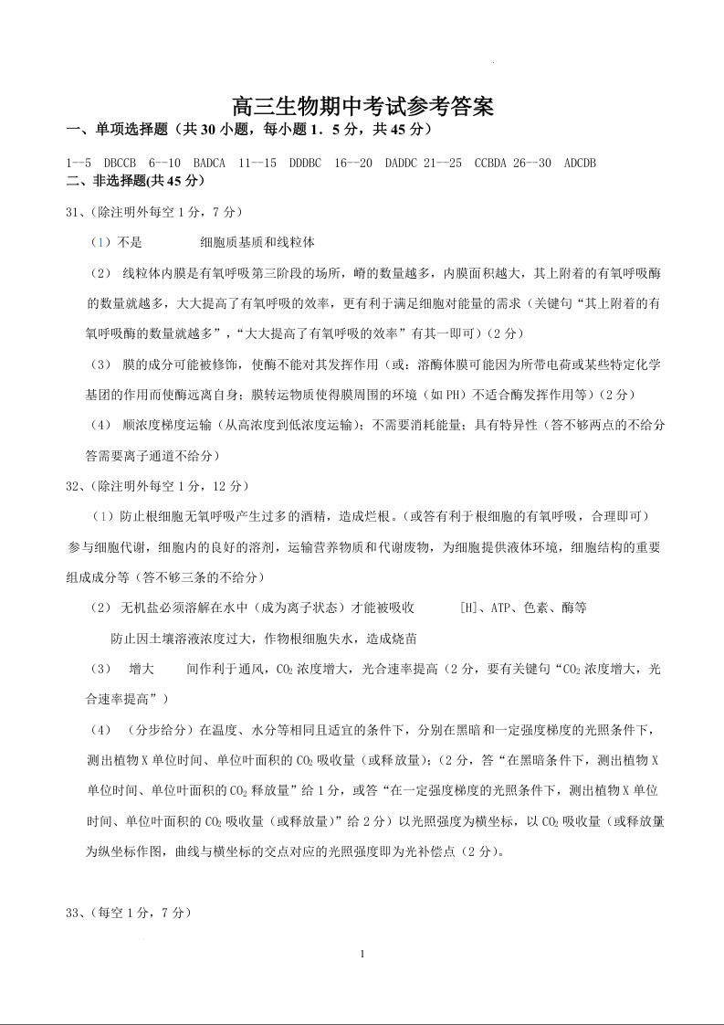 高三生物答案--河南省南阳市2022-2023学年高三上学期11月期中