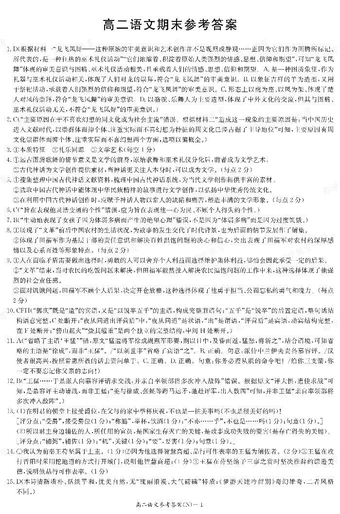 高二语文答案--湖南省长郡中学2025-2026高二上学期期末考试