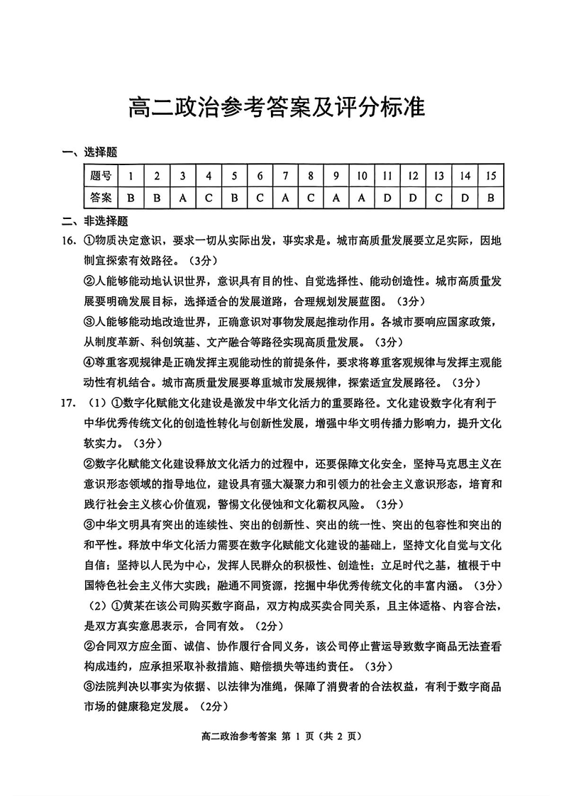 高二政治答案--江苏省苏州市2025-2026学年度高二上学期期末考试