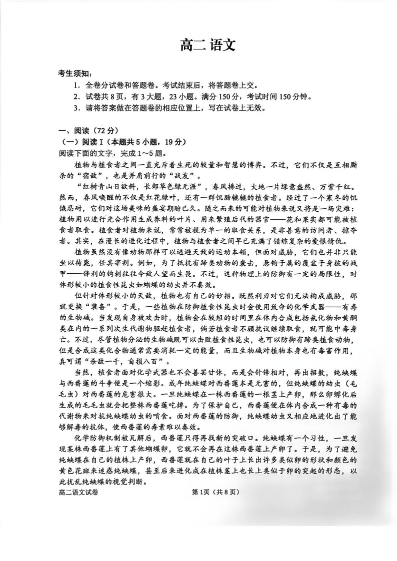 高二语文+答案--浙江衢州市2025-2026学年高二上学期2月期末考试