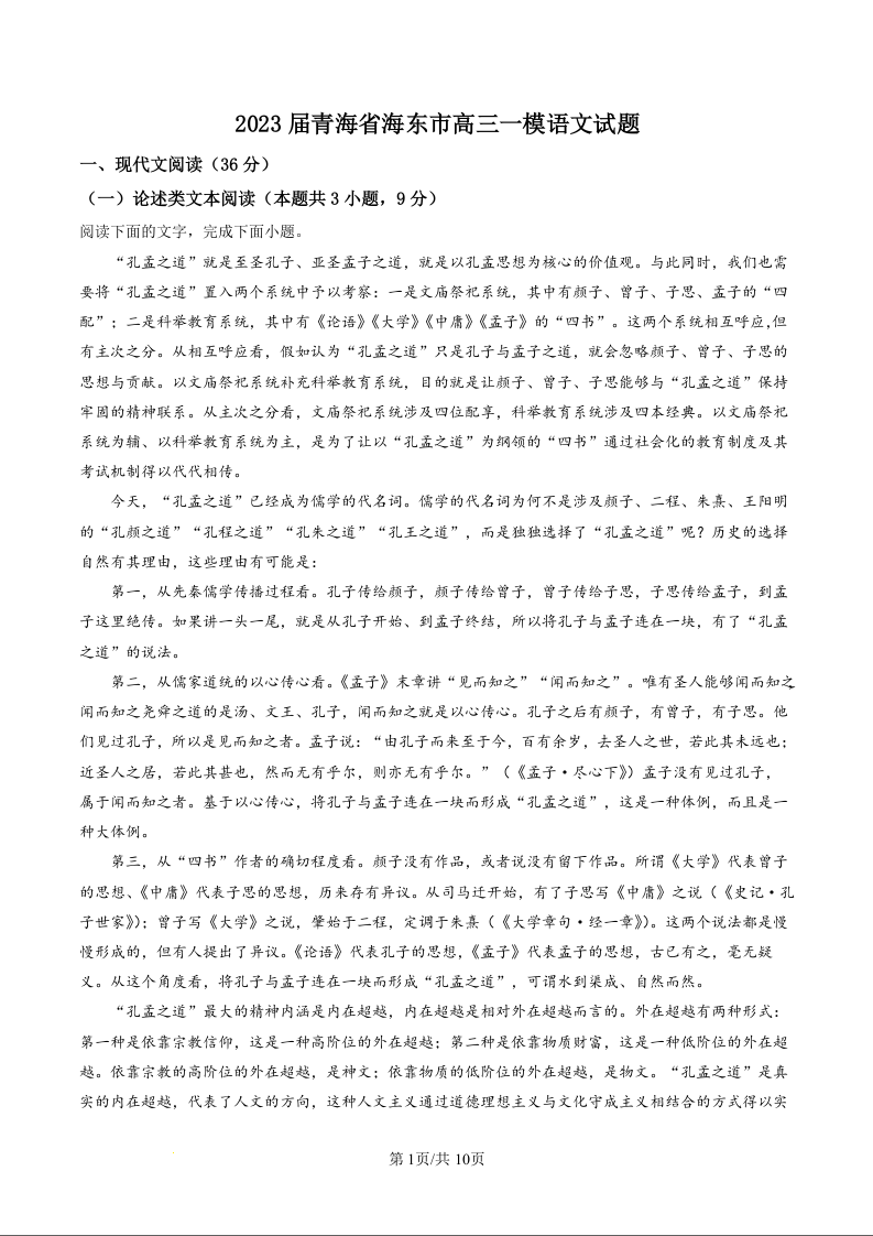 高三语文(原卷版)--青海省海东市2023届高三上学期12月第一次模拟