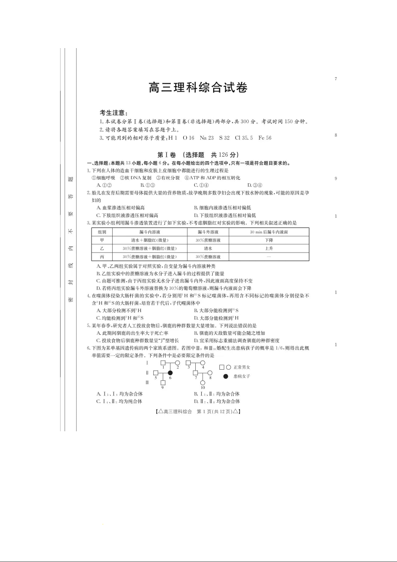 高三理综--青海省海东市2023届高三上学期12月第一次模拟