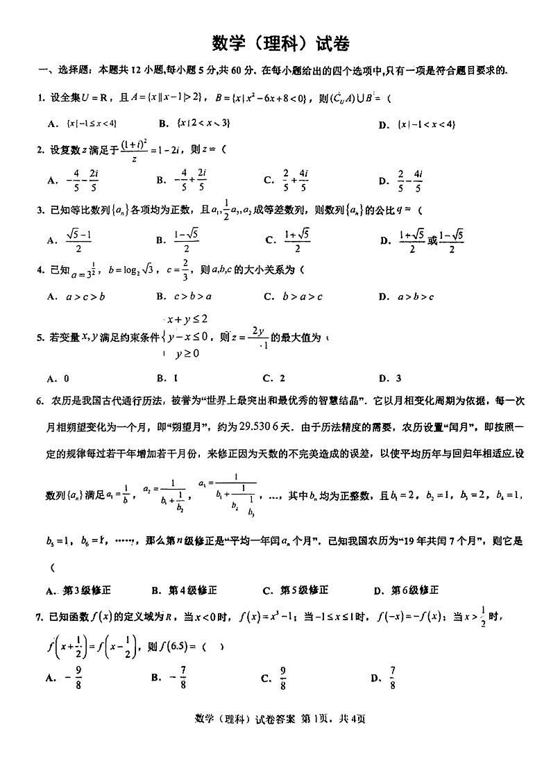 高三理数+答案--江西省临川第一中学高三上学期11月教学质量检测