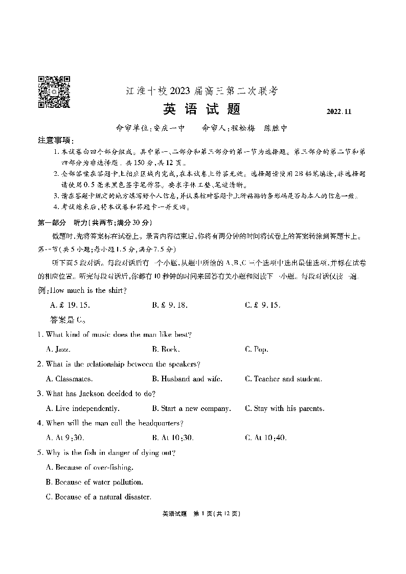 高三英语--江淮十校2023届高三第二次联考