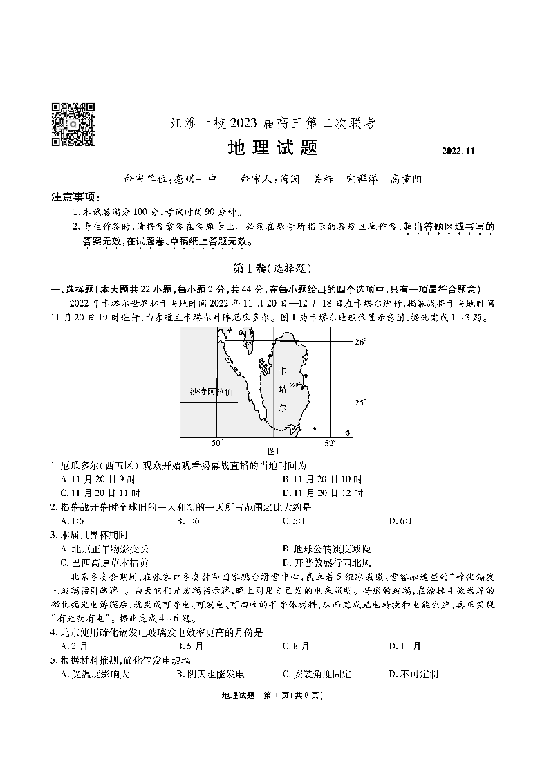 高三地理--江淮十校2023届高三第二次联考