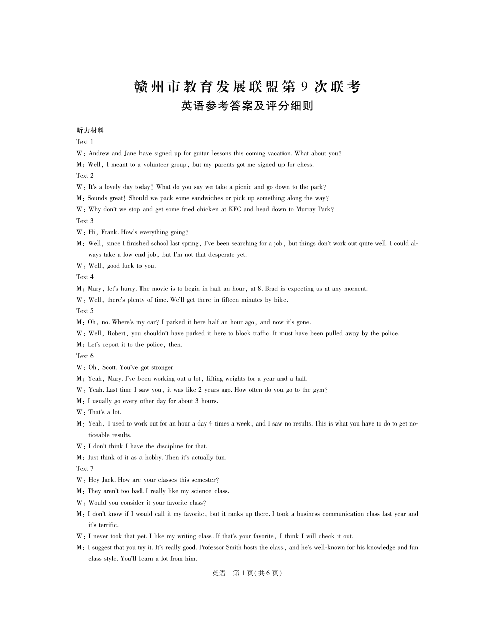 高三英语答案--江西省赣州市教育发展联盟2023高三上学期第9次联考