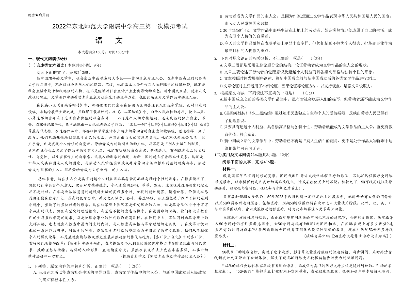 高三语文--吉林省长春市东北师范大学附属中学2023届高三上学期一模