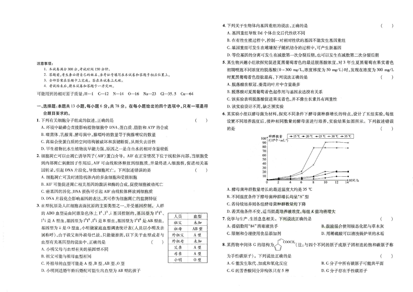 高三理综--吉林省长春市东北师范大学附属中学2023届高三上学期一模