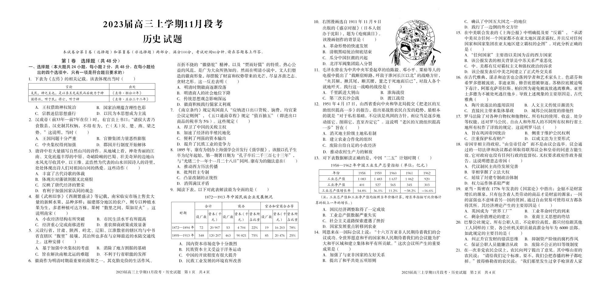 高三历史--江西省A10联盟高三上学期11月段考