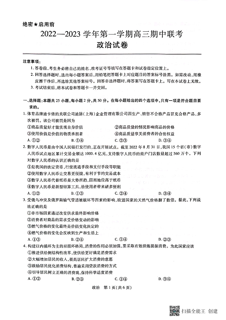 高三政治--江西省稳派教育高三上学期11月期中