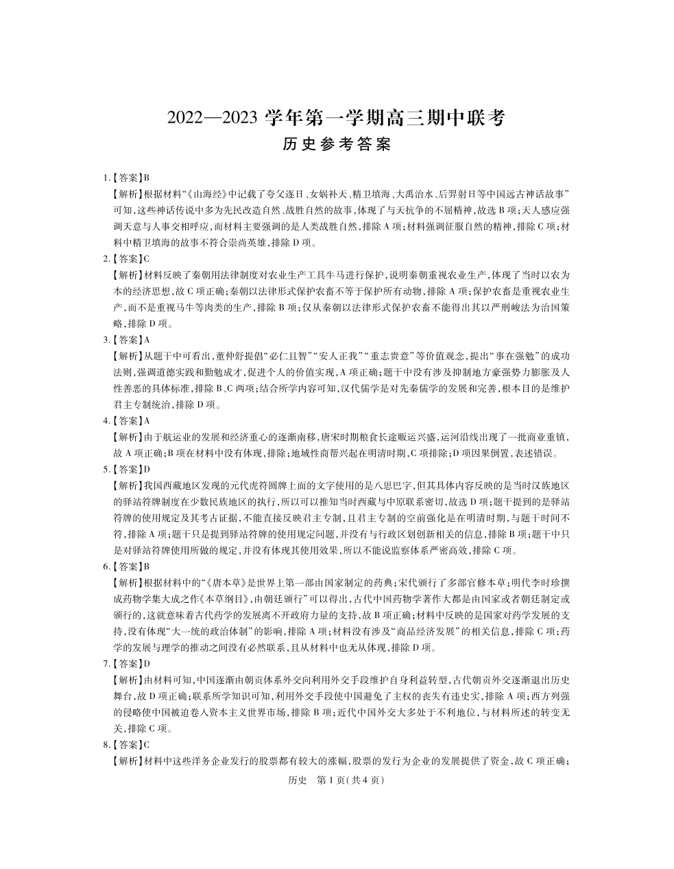 高三历史答案--江西省稳派教育高三上学期11月期中