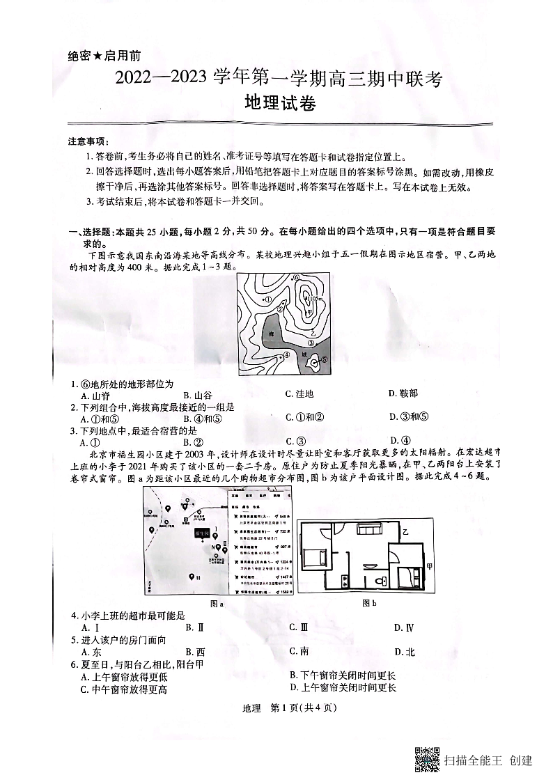 高三地理--江西省稳派教育高三上学期11月期中