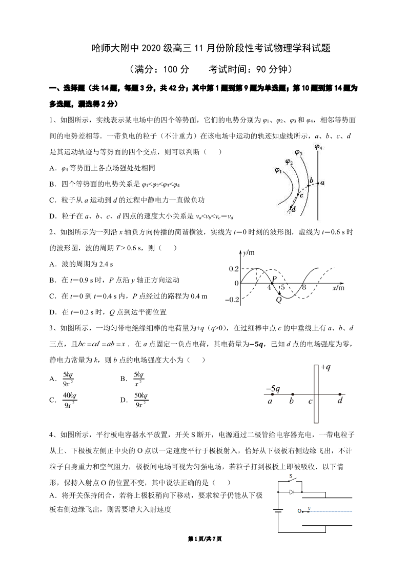 高三物理+答案--黑龙江省哈尔滨师范大学附属中学2023高三上学期11月阶段性考试考试
