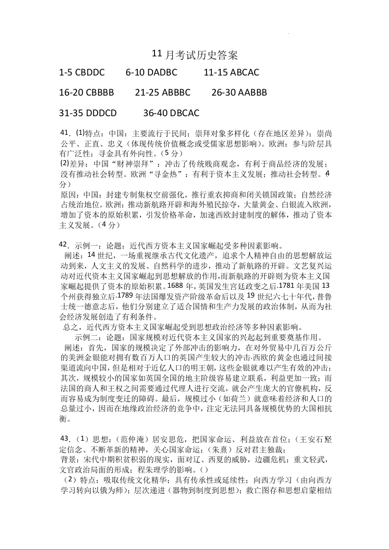 高三历史答案--黑龙江省哈尔滨师范大学附属中学2023高三上学期11月阶段性考试考试
