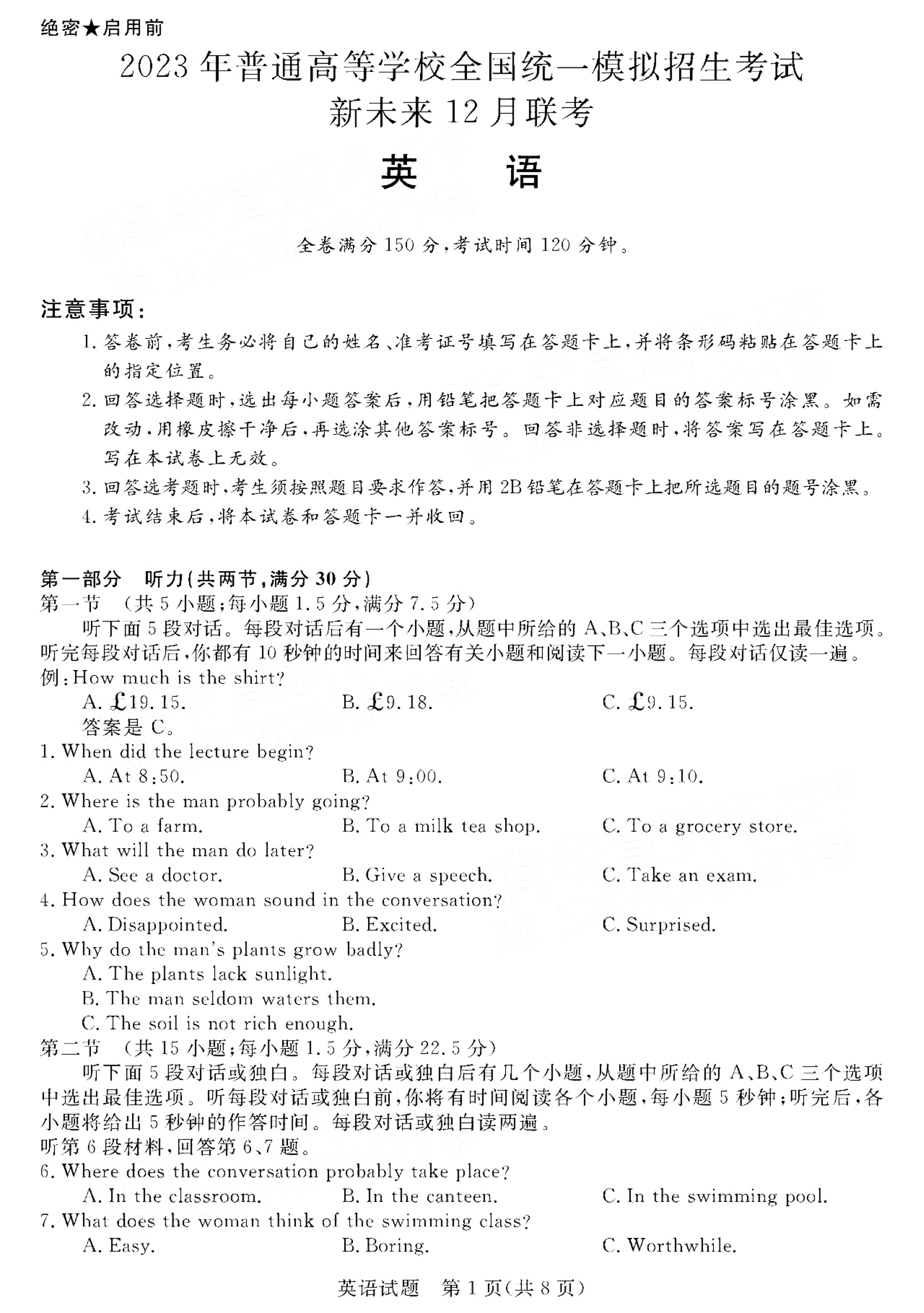 高三英语+答案--河南省新未来联盟2023高三上学期12月联考
