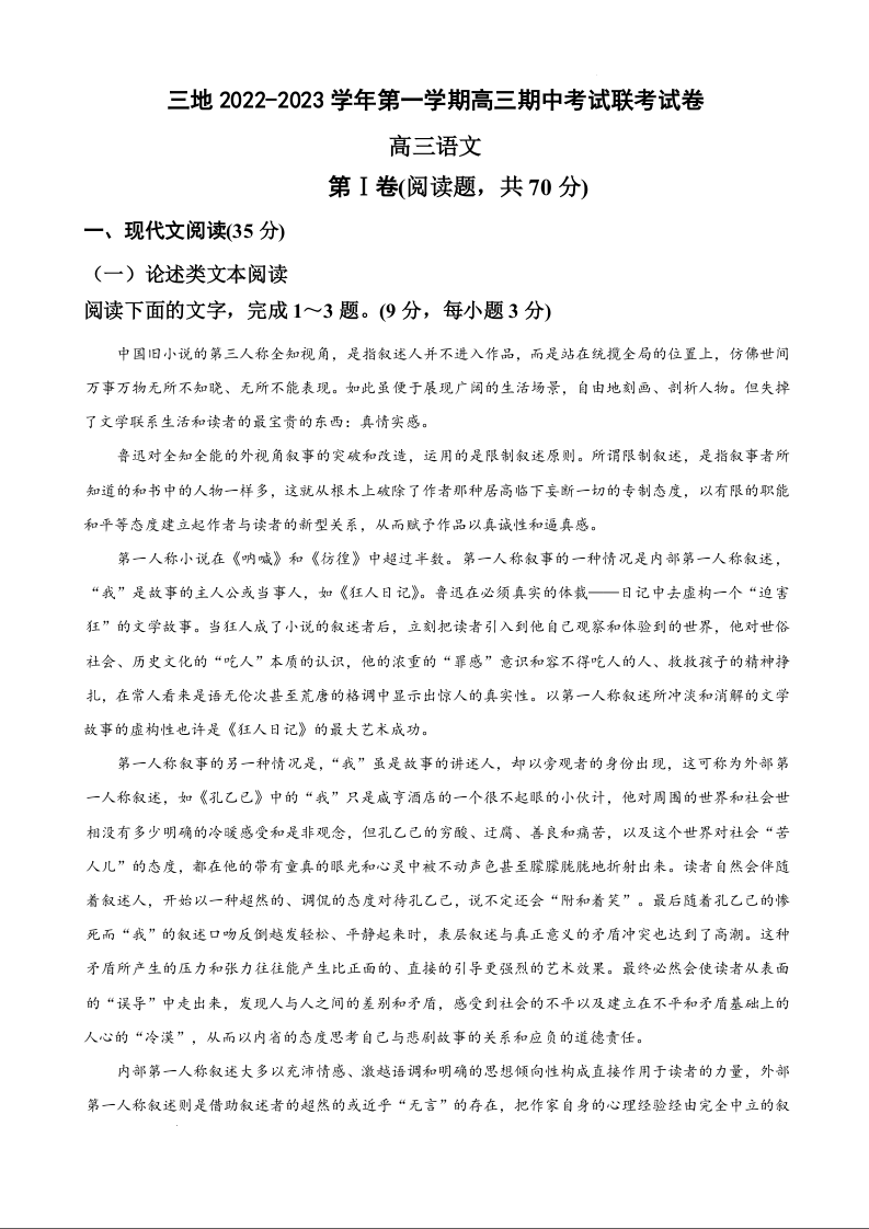 高三语文答案--甘肃省陇南、临夏、甘南三地2023高三上学期期中联考