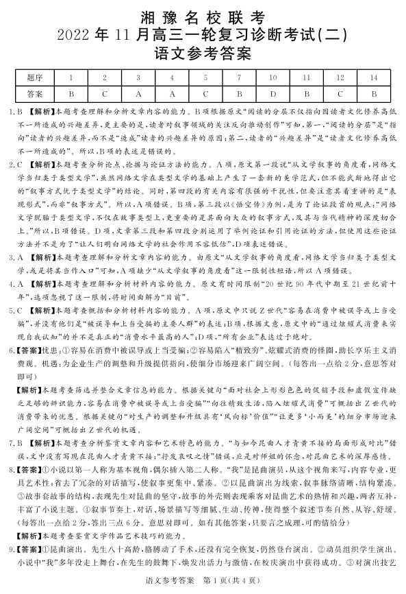 高三语文答案--湘豫名校联考高三上学期11月一轮复习诊断考试(二)