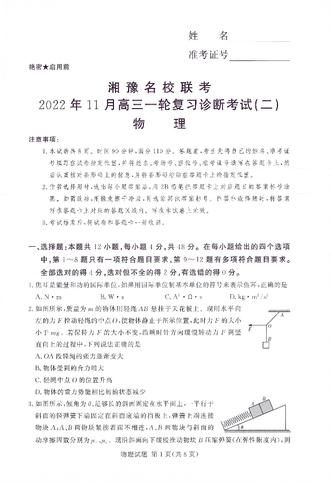 高三物理--湘豫名校联考高三上学期11月一轮复习诊断考试(二)
