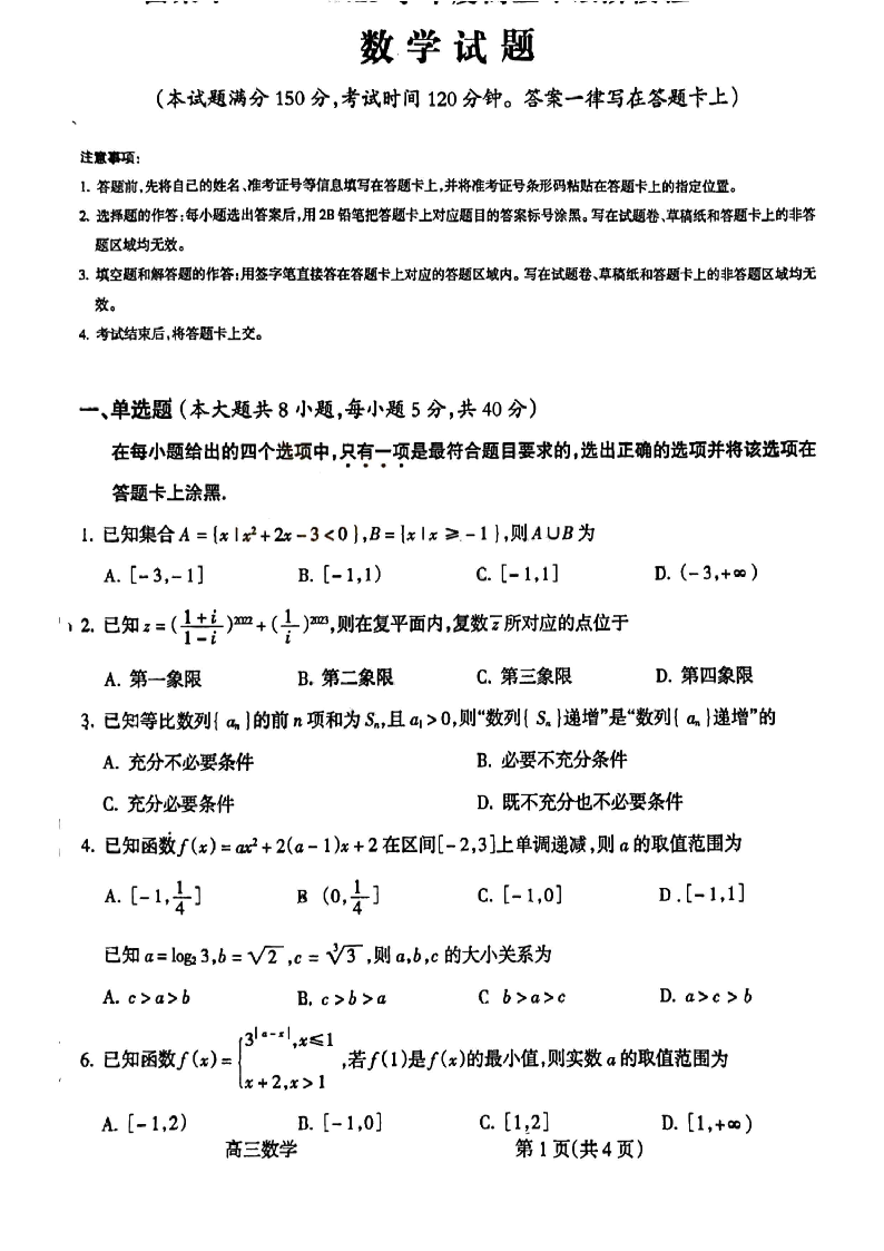 高三数学+答案--山西省吕梁市2022-2023学年高三11月阶段性测试