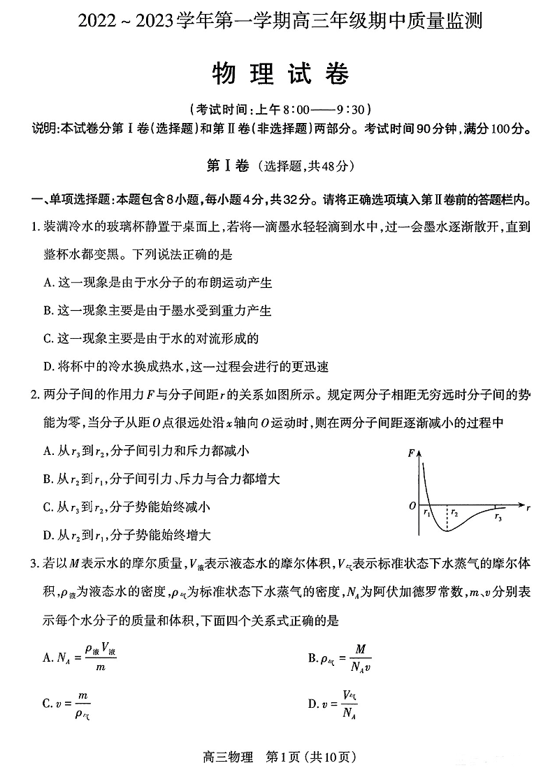 高三物理--山西省太原市高三上学期期中质量监测
