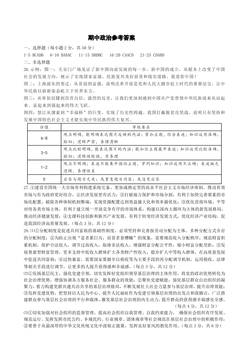 高三政治答案--山西省运城市2023届高三上学期11月期中调研测试