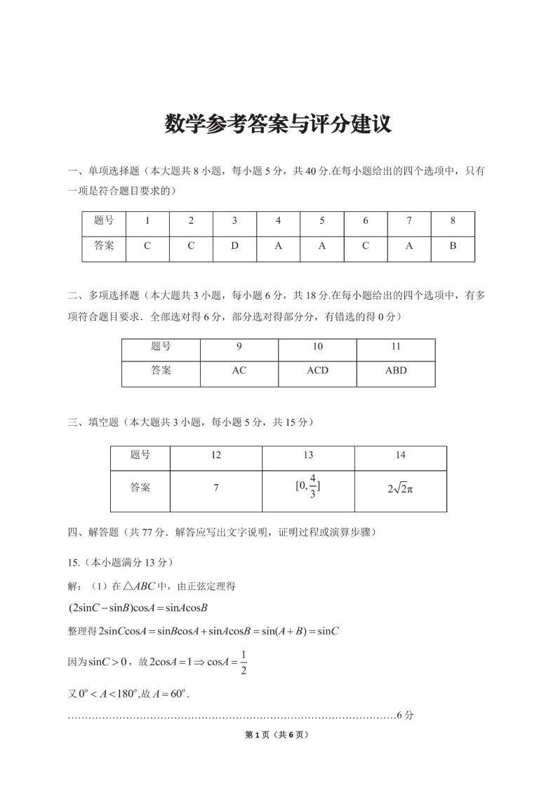 高三数学答案--贵州省贵阳市2026年高三年级2月适应性考试(一)