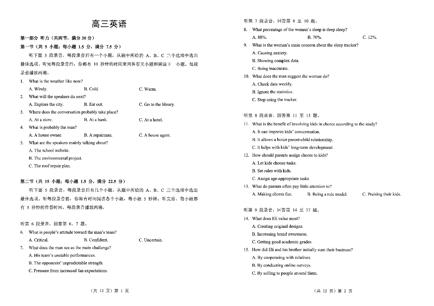高三英语--湖北省新八校2026届高三下学期2月开学考试