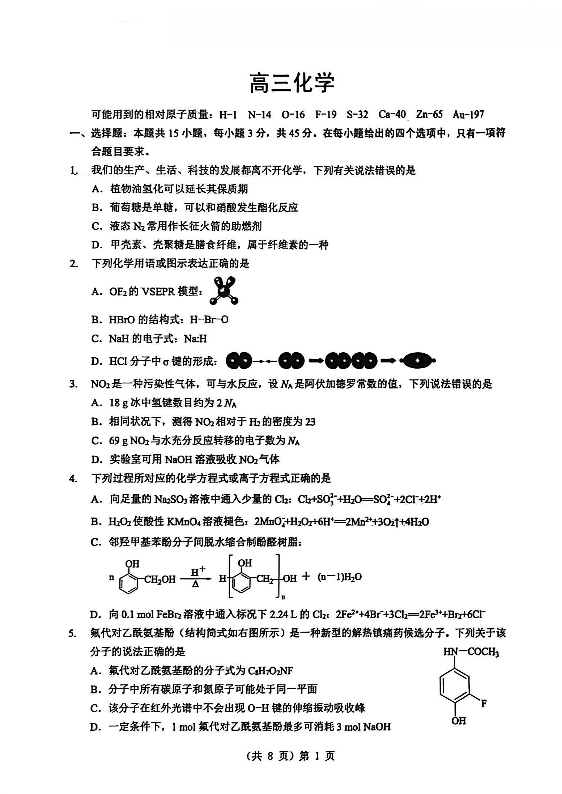 高三化学--湖北省新八校2026届高三下学期2月开学考试