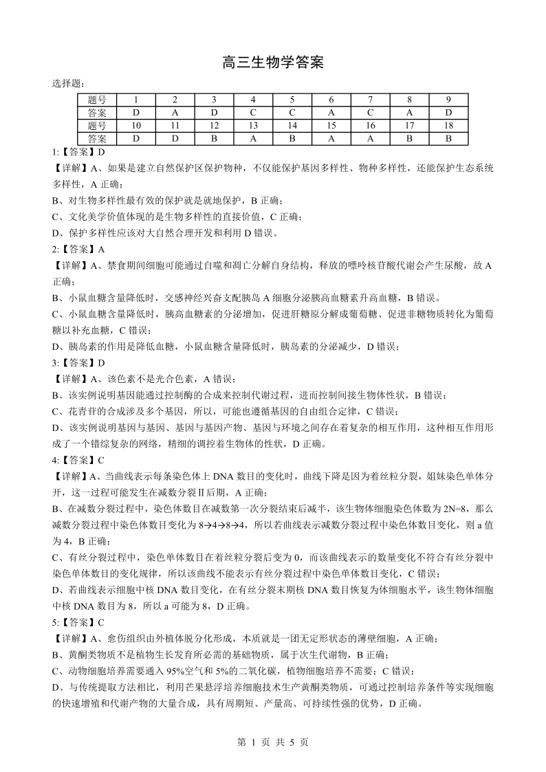高三生物答案--湖北省新八校2026届高三下学期2月开学考试